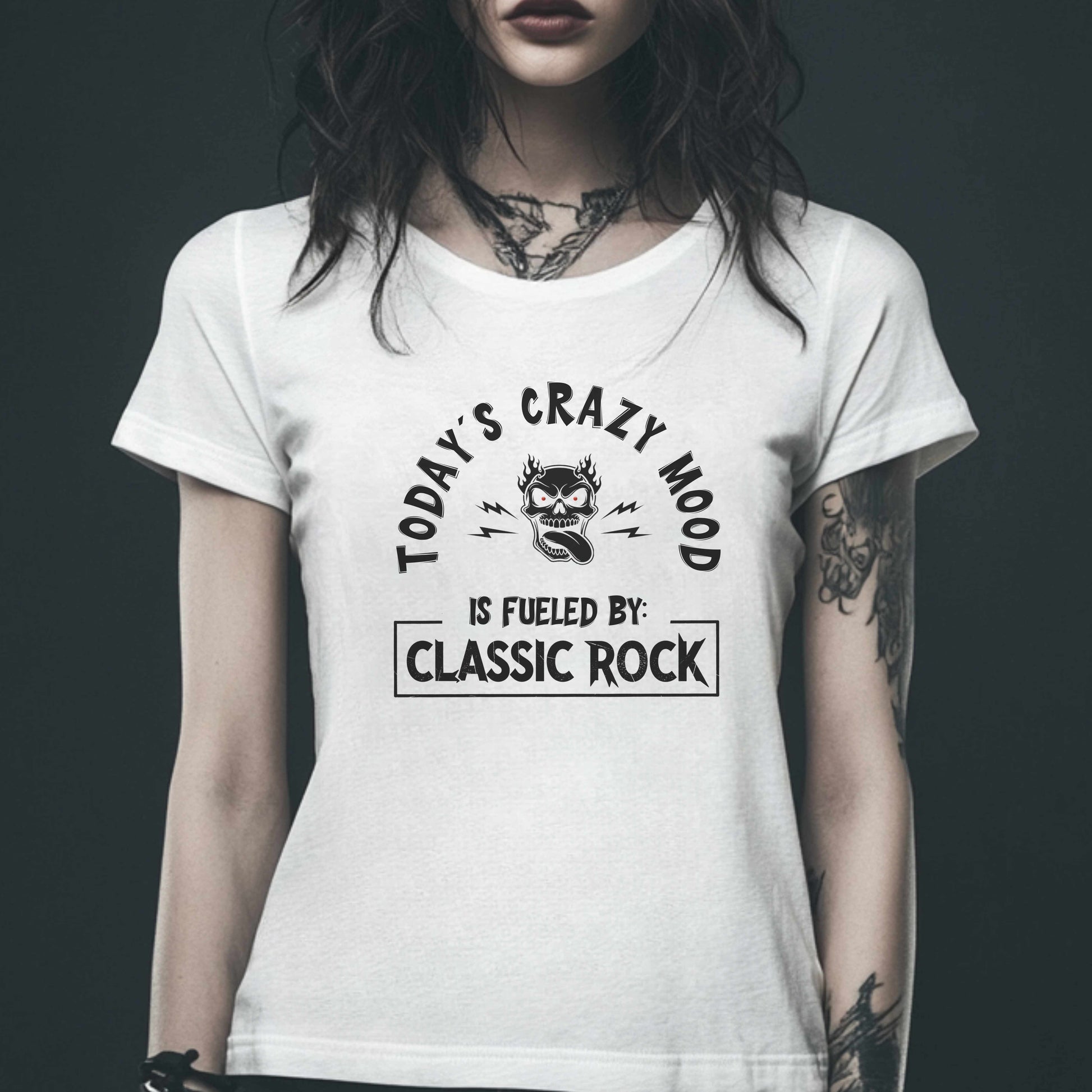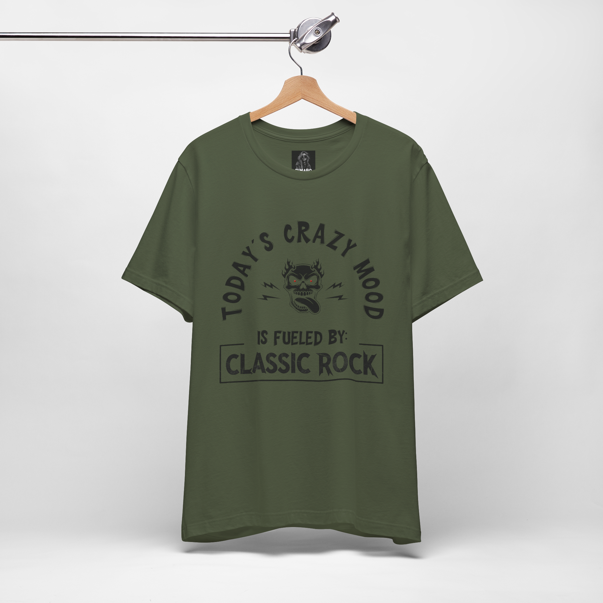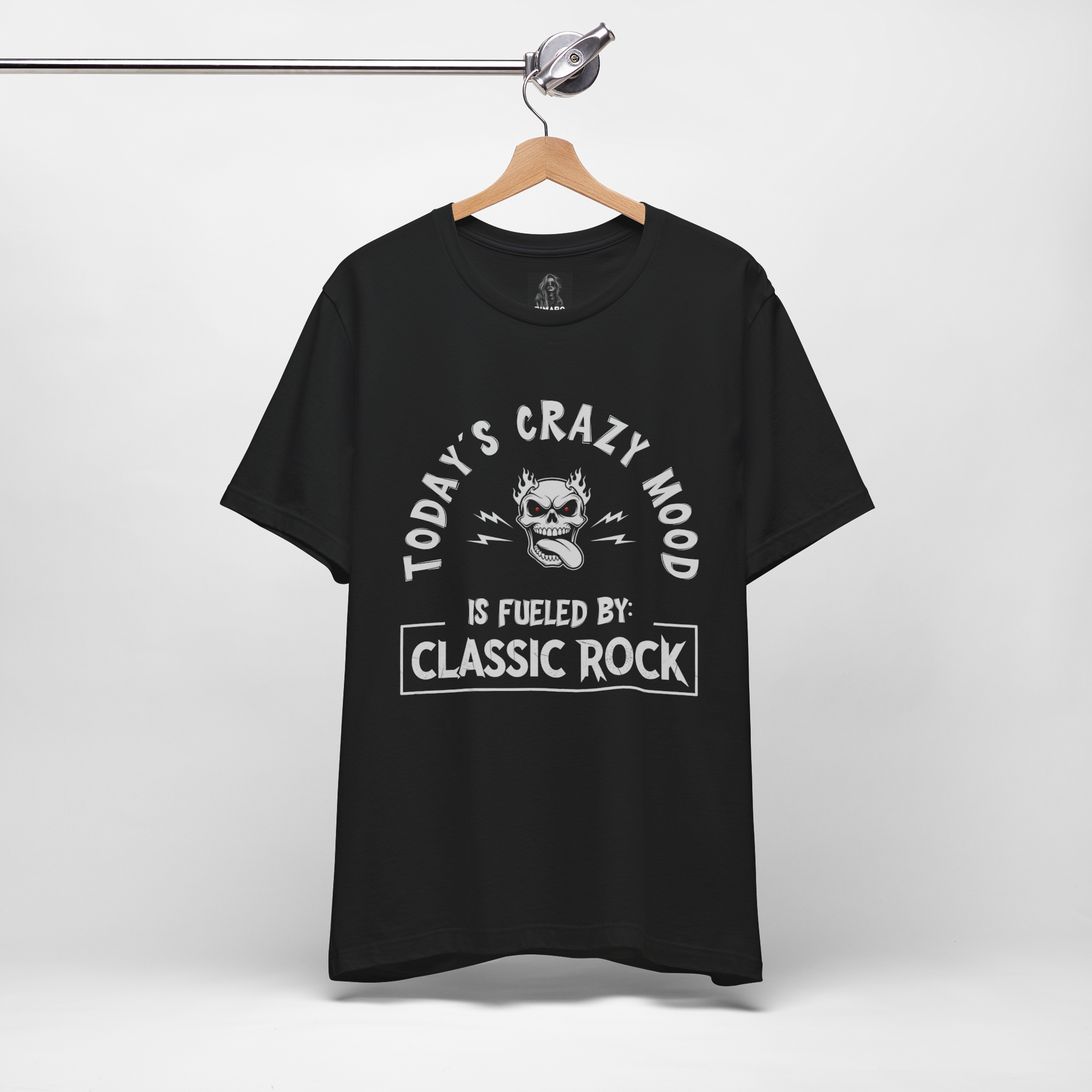 Turn the volume all the way up — this shirt is for the days when life gets loud. Featuring a bold skull-and-lightning design with the words "Today's Crazy Mood is Fueled by Classic Rock" this tee is the perfect way to show the world you run on riffs and great songwriting.