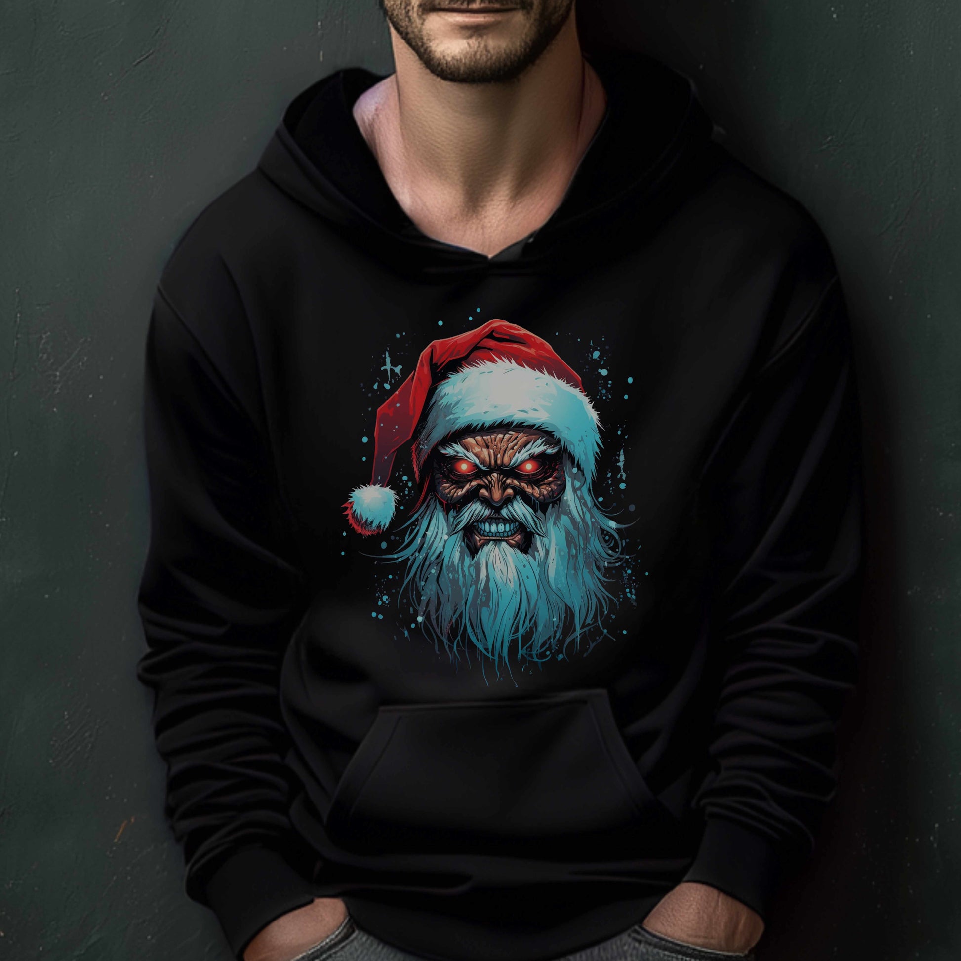 Featuring a chilling, high-quality graphic of a sinister Santa with glowing red eyes, this pullover is perfect for metalheads, horror lovers, and anyone who likes their Christmas with a little chaos.