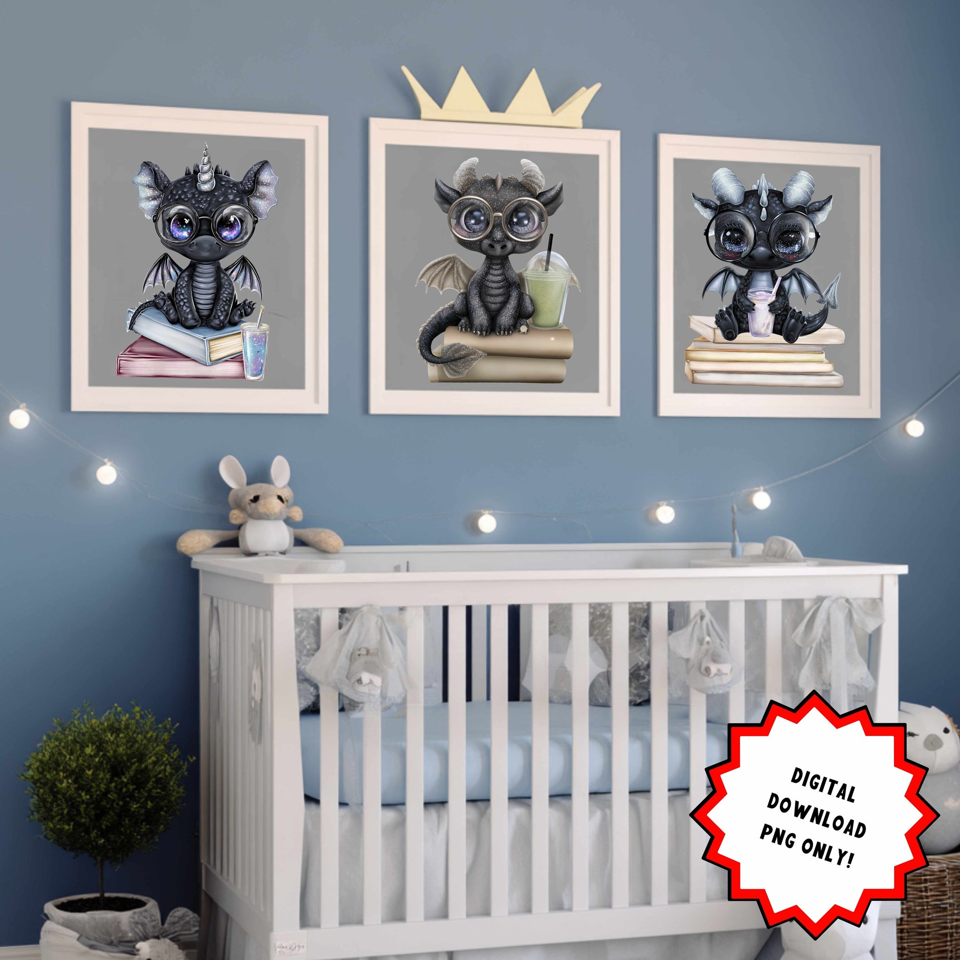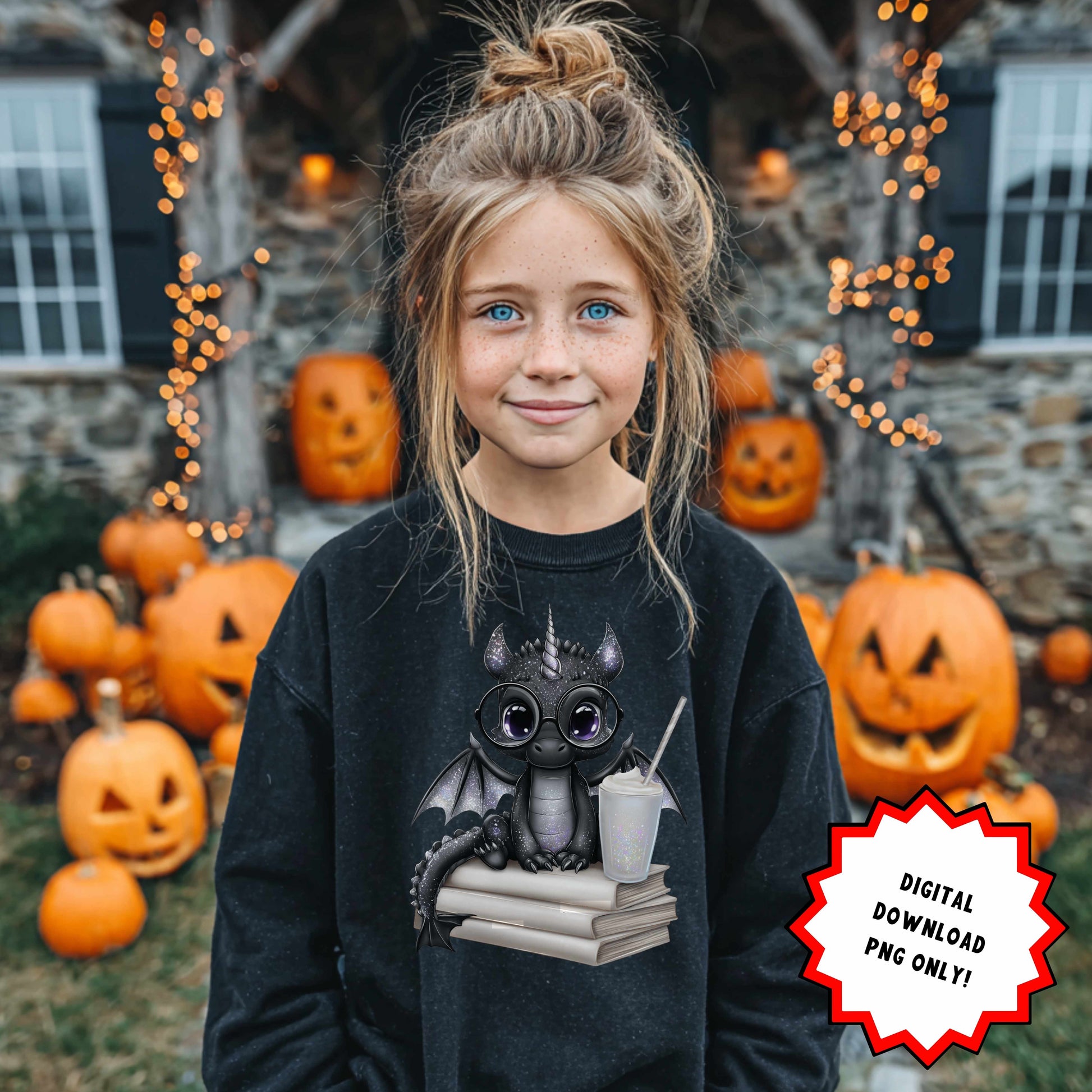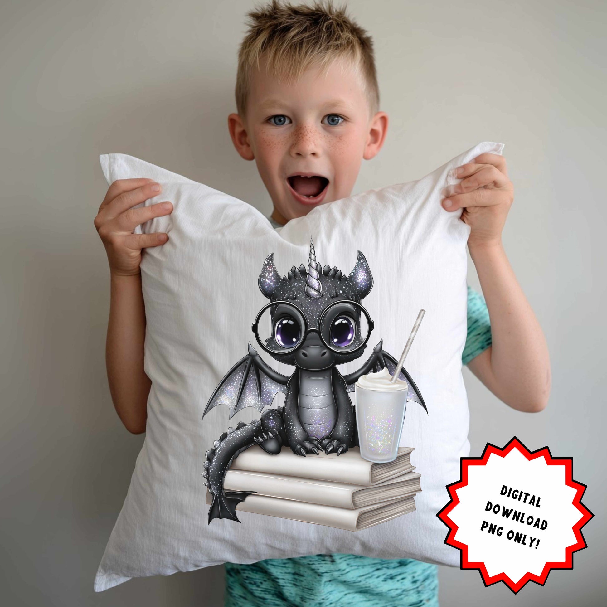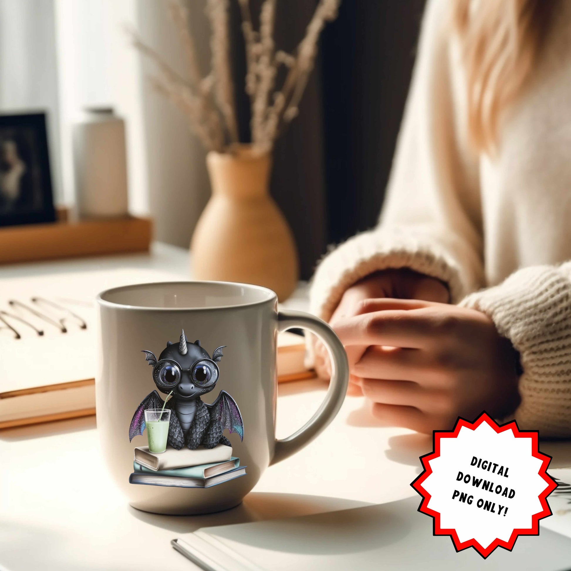 Dreamy and cute Dragon png files, silver and obsidian/black with glitter and a smoothie and big sparkly eyes and big glasses, this dragon needs Books in its life. The perfect little Dragon for your crafting projects. We help to bring your ideas to life !