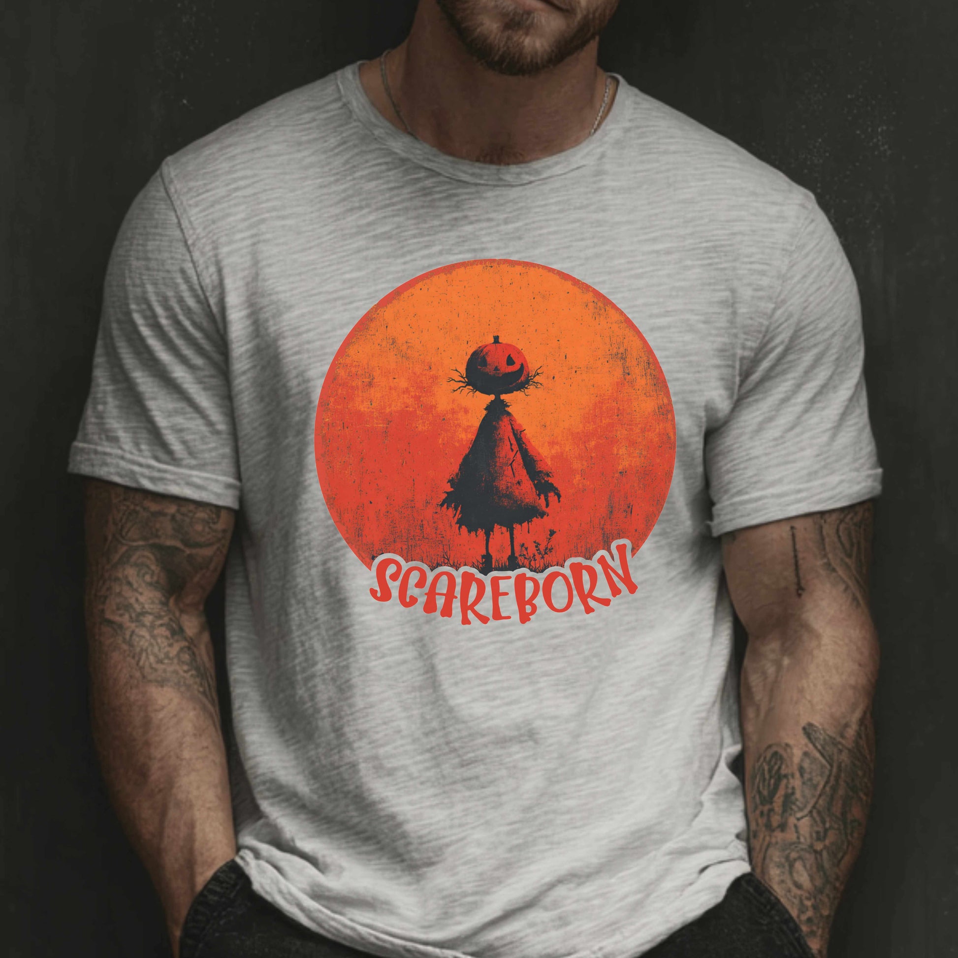 Scareborn, The Pumpkin Scarecrow Halloween T-Shirt That Haunts Back,Graphic Tee, Male Collection